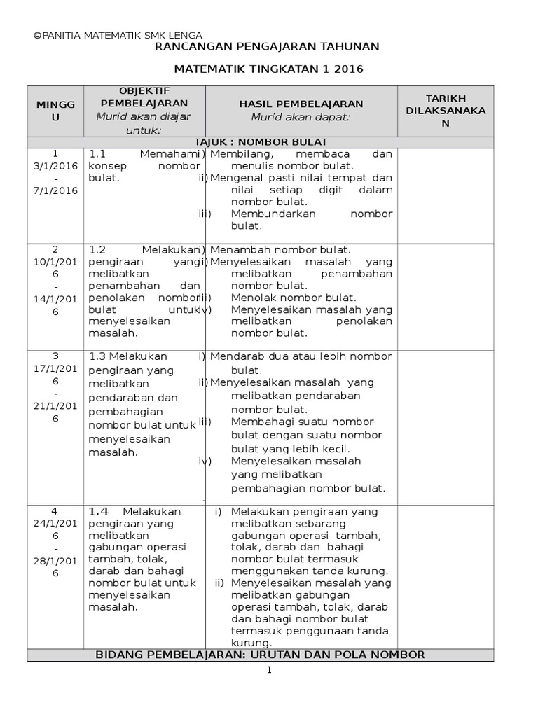 Rancangan Pengajaran Tahunan Matematik Tingkatan 1 2016 Pdf